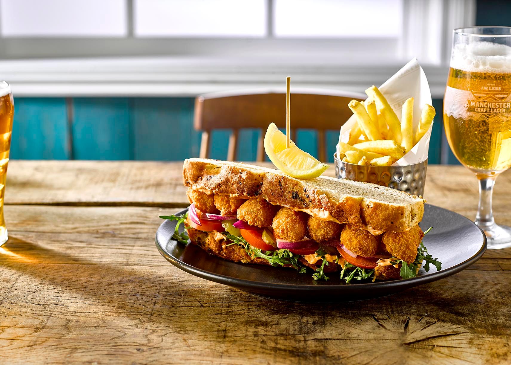 Pull up a chair with our new Spring menu in Wilmslow. Enjoy delicious seasonal dishes, made for warm days and cold pints with friends and family. Perfect for pairing with our Manchester-made beers, our new menu includes seasonal salads, new signature dishes, succulent grills and more. Not forgetting your pub favourites like our legendary cheese & onion pie, MPA battered cod fillet and the iconic Brewery tower burger.